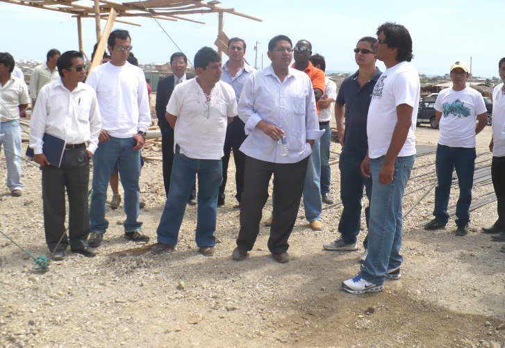 Momentos en que el Ing. Otto Vera Palacios, alcalde de Santa Elena, recibía información de los constructores sobre el avance de la obra en la terminal terrestre en Santa Elena |