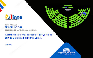 La Asamblea Nacional, con 131 votos afirmativos, aprobó el proyecto de Ley de Vivienda de Interés Social, sobre la base del informe presentado por la Comisión de Gobiernos Autónomos, Descentralización, Competencias y Organización del Territorio, esta normativa busca garantizar una regulación efectiva en temas de vivienda de interés social y eliminar trabas administrativas para el trámite de los respectivos permisos.